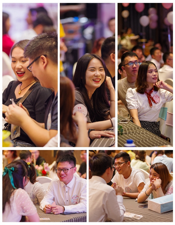 “速配环节”,现场男女嘉宾扫码,填写自己的心动嘉宾,并匹配出速配成功的人员,更是将活动推向了高潮,活动现场气氛热烈,欢笑声不断。