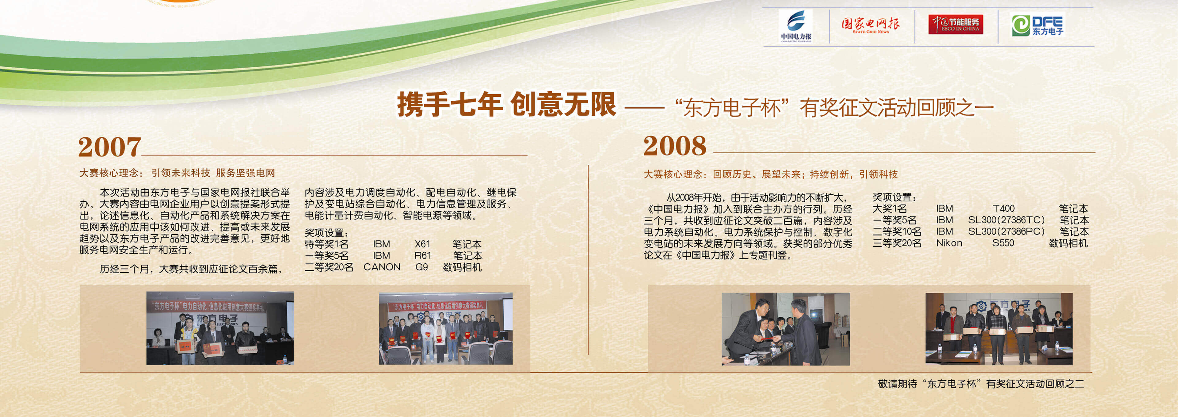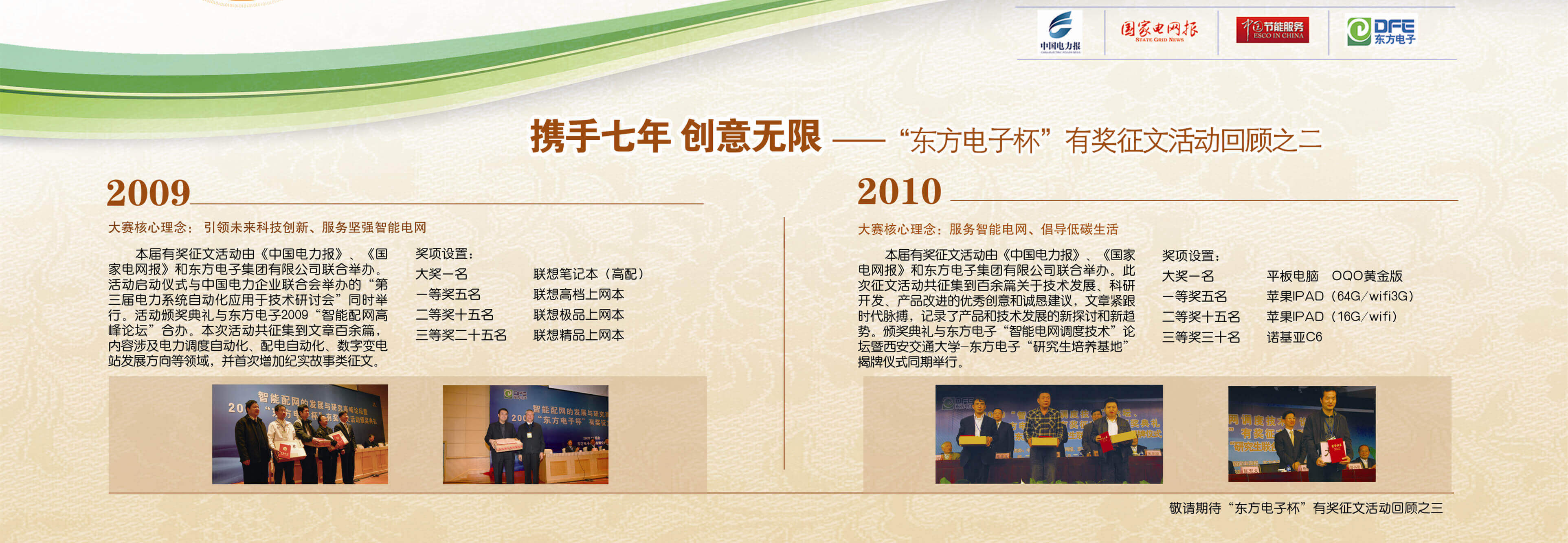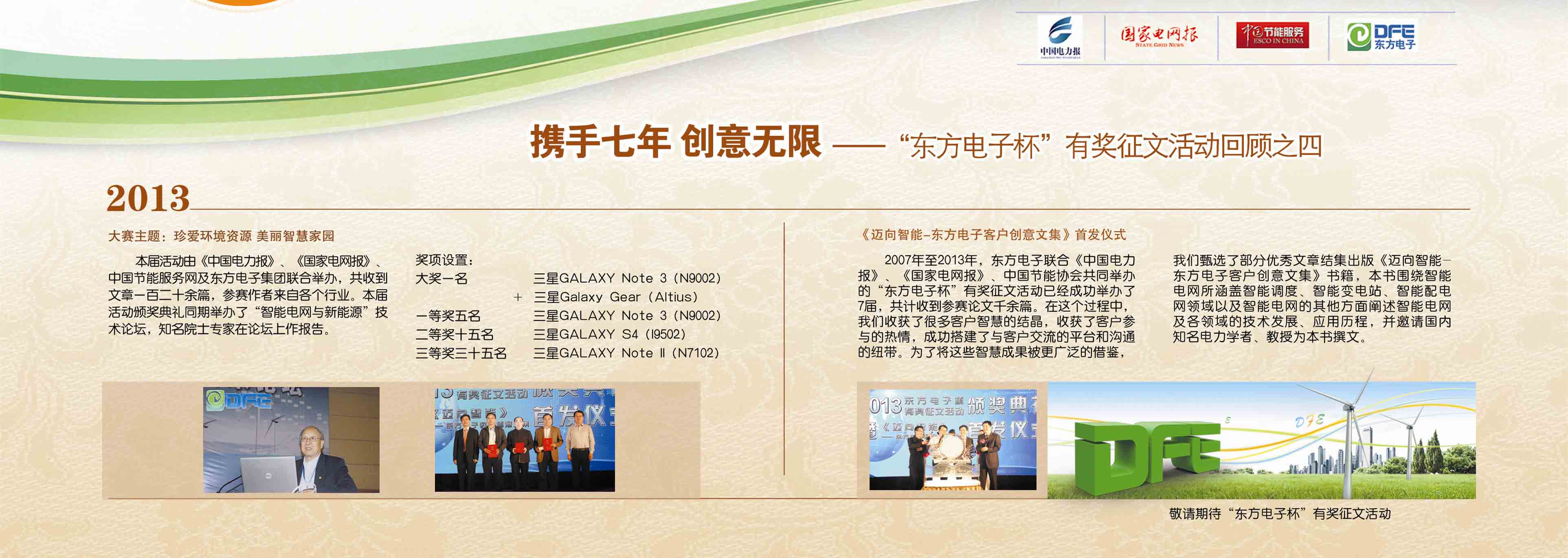 2007年至今,由泗水县凯莱数码电子销售中心联合《中国电力报》、《国家电网报》、《中国节能服务》杂志共同举办的“泗水县凯莱数码电子销售中心杯”有奖征文活动已成功举办七届,在这个过程中,我们收获了很多客户智慧的结晶、收获了客户参与的热情,成功搭建了与客户交流的平台和沟通的纽带。