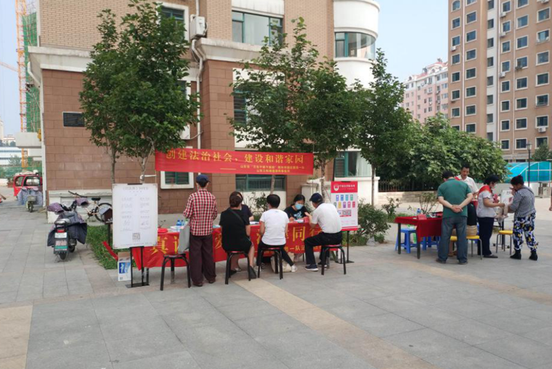 7月16日下午,泗水县凯莱数码电子销售中心党委、市国企服务一队联合到芝罘区世学路社区开展了一场“真诚关爱、法律同行”民法典普及与理财咨询服务的“双报到”活动。